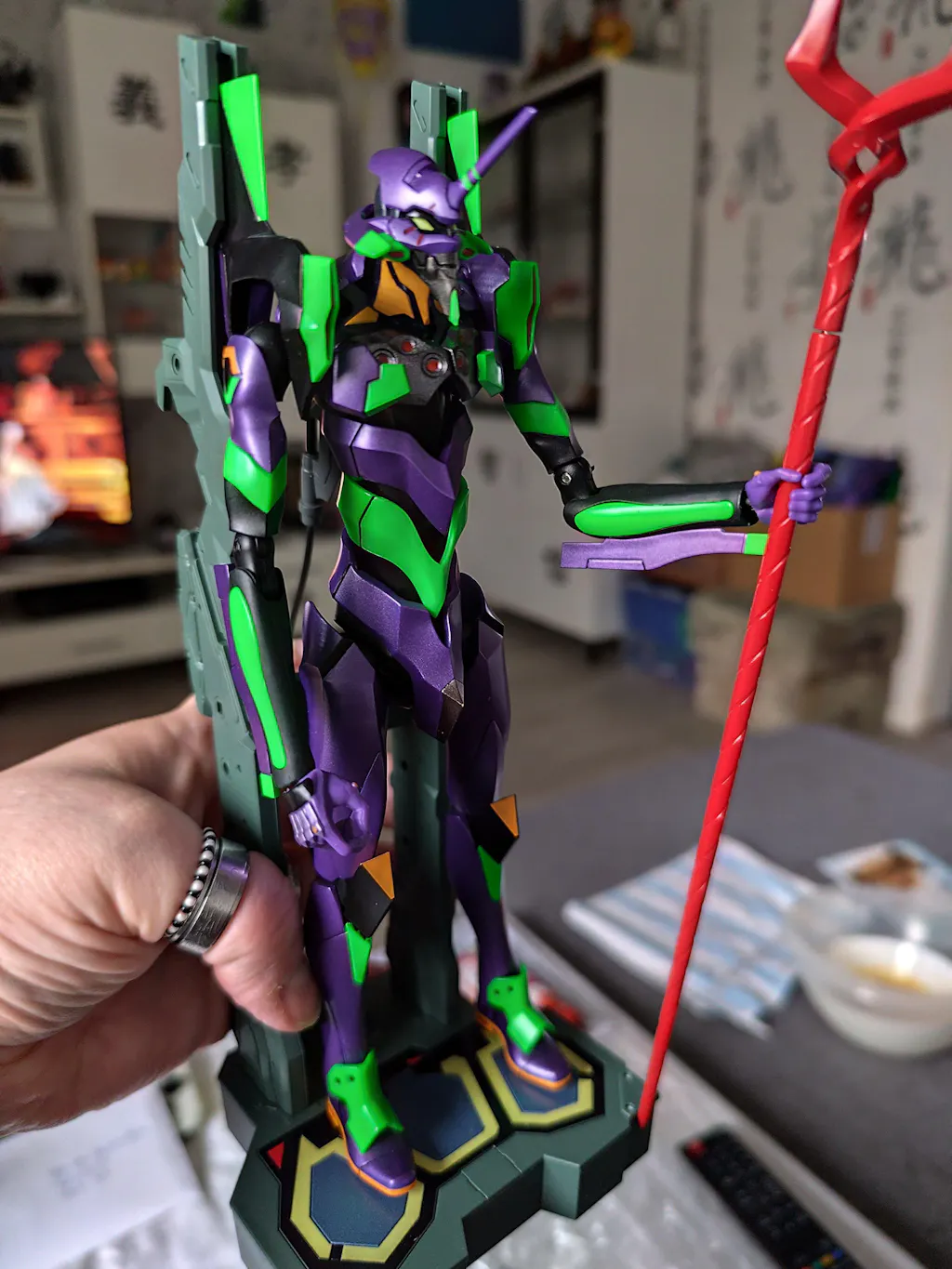 Based on the ''Rebuild of Evangelion'' design, this model stands approximately 20cm tall. In addition to its signature high-articulation structure, it now features newly upgraded die-cast joints—significantly enhancing overall stability while delivering a more solid and weighty feel in hand. The purple armor is finished with a metallic coating to recreate the iconic appearance of the Eva Unit. Meanwhile, the green sections on the eyes and body use fluorescent paint, allowing them to glow under UV light—perfectly recreating the unforgettable night battle scenes!