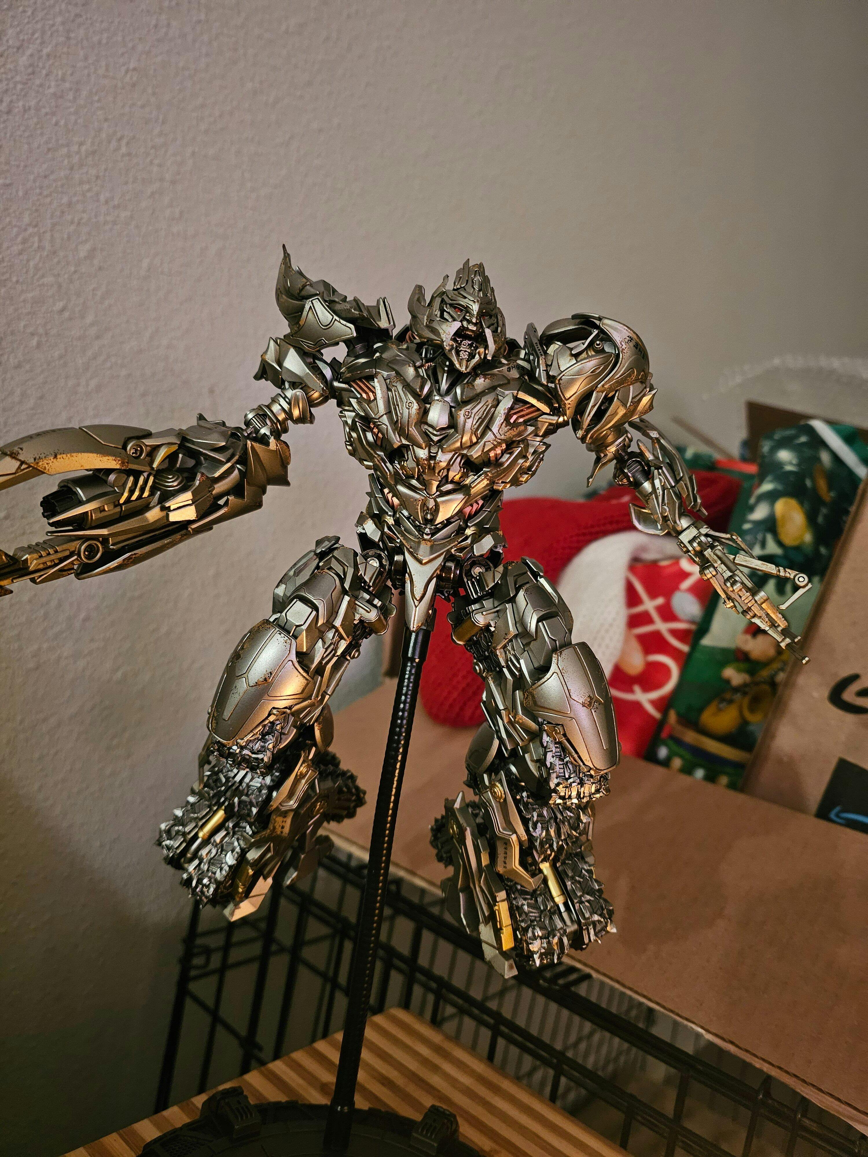 • Premium Paintwork – True to the AMK PRO aesthetic, Megatron sports a full-body metallic finish with select die-cast armor parts. Layered rust and weathering effects recreate the look of a seawater-corroded war relic.