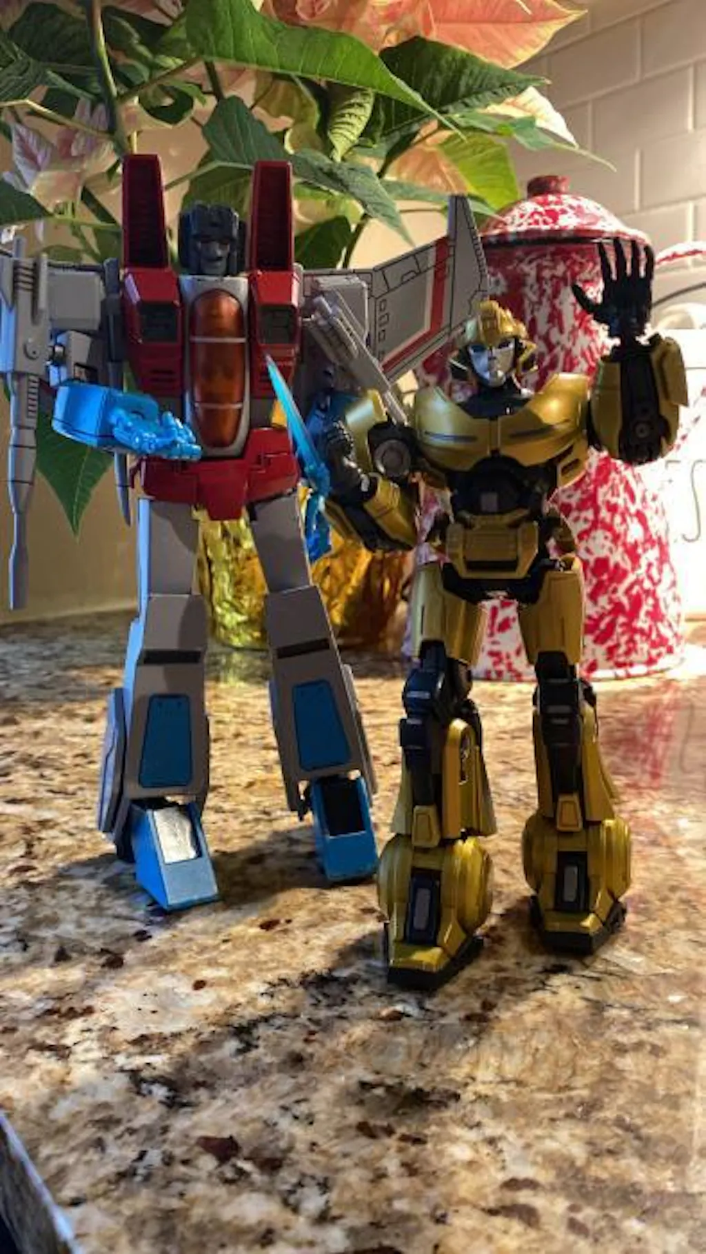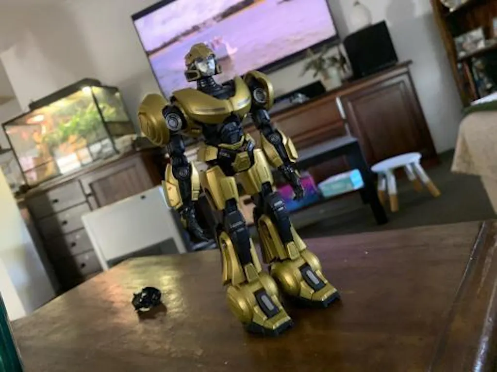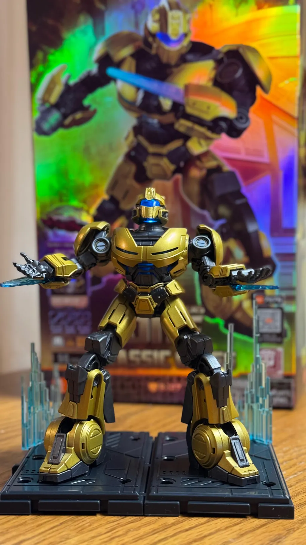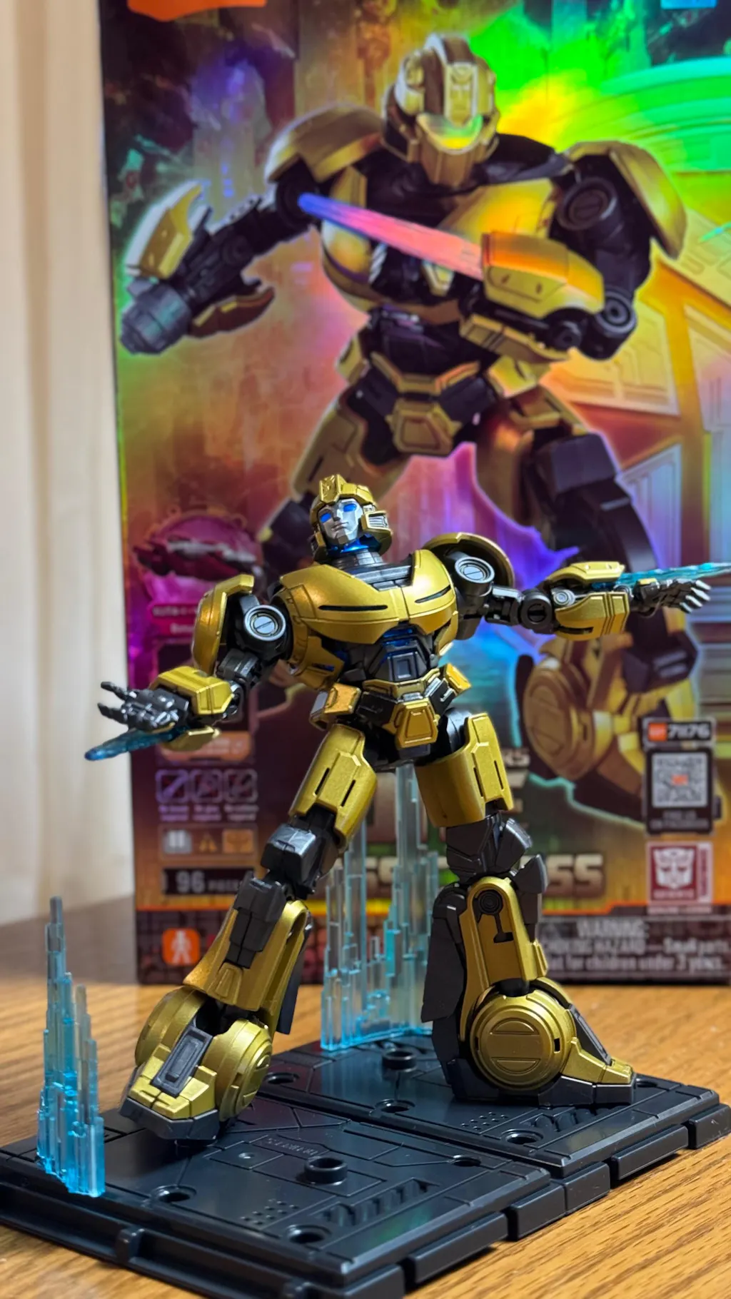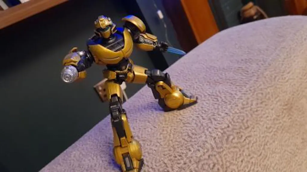 • The extensive champagne gold paint mimics a metallic shine, highlighting the model's quality. The rounded lines on the shoulders, chest, and feet accentuate B-127's lively and playful personality.